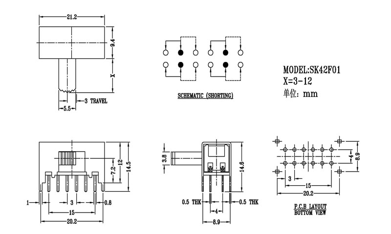 微型撥動(dòng)開關(guān)技術(shù)參數(shù):