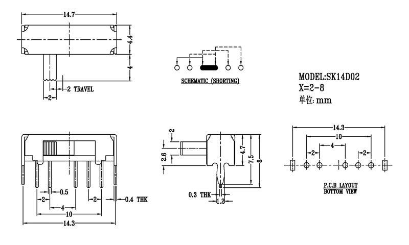 微型撥動開關技術參數: