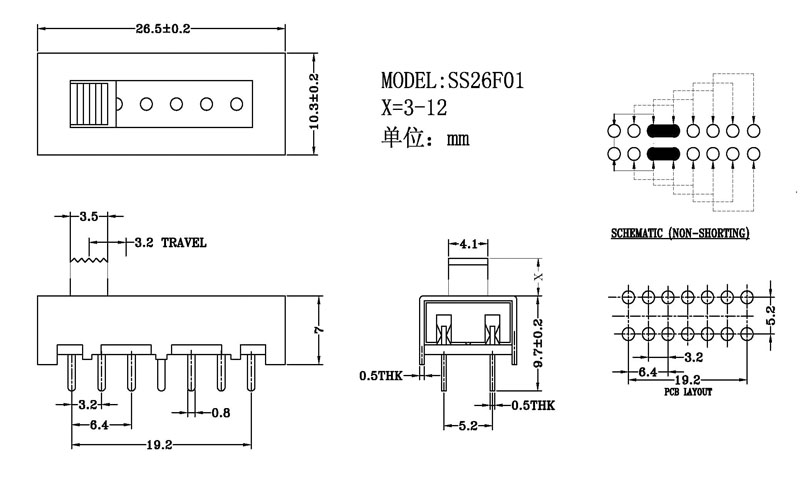 微型撥動開關技術參數: