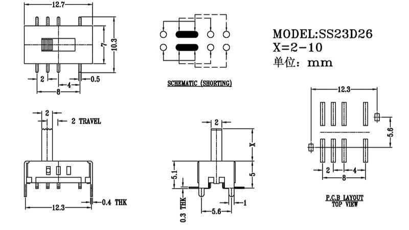 微型撥動開關(guān)技術(shù)參數(shù):