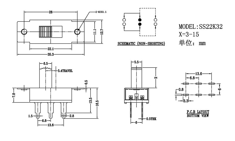微型撥動(dòng)開關(guān)技術(shù)參數(shù):