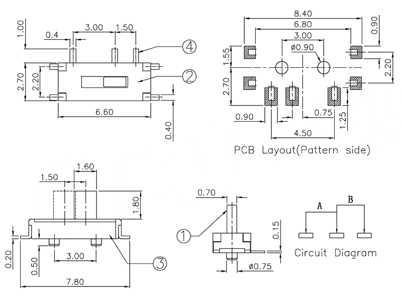 微型撥動開關技術參數: