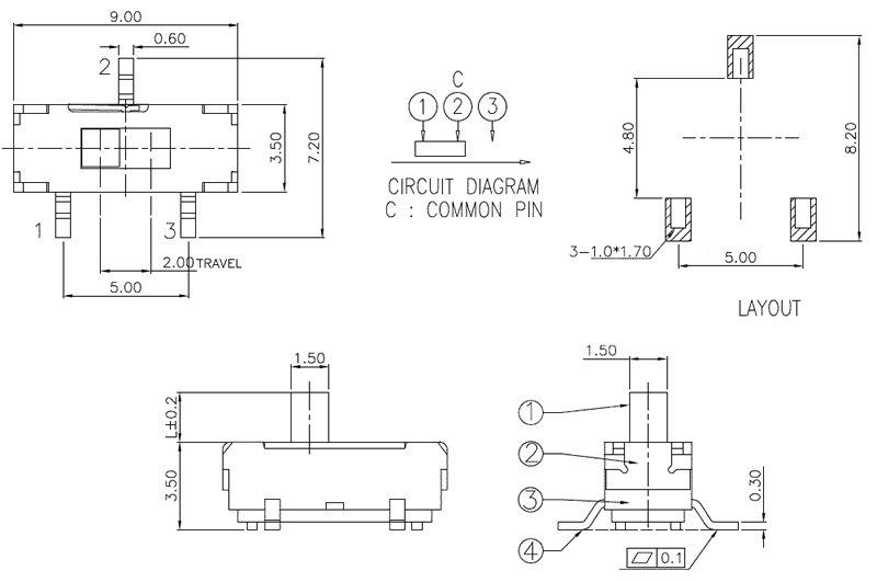 微型撥動開關技術參數:
